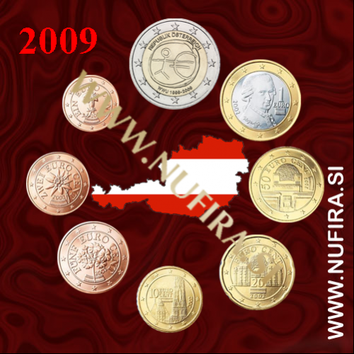 2009 Avstrija KMS SET (1c - 2 EUR) (2 EUR je kovanec za EMU)